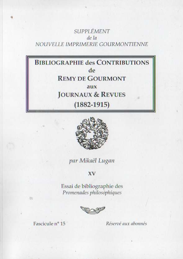 Illustration de couverture : portrait de Remy de Gourmont, à la manière de Jean Dubuffet, par Annick Bouillon. Préambule Nestor ou l'art d'avoir (presque) toujours tort, par Thierry Gillybœuf Le Problème du style, par M. Remy de Gourmont Le Travail du style, par M. Antoine Albalat, par Marcel Ballot La Petite Ville : de la cathédrale emblématique aux clochers et autres lieux, par Jean-Louis Meunier Entretien inédit avec Natalie Barney, par Michel Patient Un dialogue des amateurs, par Legrand-Chabier Henri de Régnier poète, par Jean de Gourmont Le galant préteur, conte, par Jean de Gourmont Sur la mort de quelqu'un, par L[éon] R[iotor] ENQUÊTES & CURIOSITÉS : Retour sur André du Fresnois, par Vincent Gogibu Articles d'André du Fresnois : Le vraquier, par Christian Buat *** SUPPLÉMENT BIBLIOGRAPHIQUE RÉSERVÉ AUX MEMBRES DU CARGO : REMY DE GOURMONT & les grandes petites revues du symbolisme, par Mikaël Lugan REMY DE GOURMONT, Théâtre : L'Ombre d'une femme, suivi des Idées avancées N° 7. Hiver 2016 Illustration de couverture : portrait de Remy de Gourmont, à la manière de Rousseau le Douanier, par Annick Bouillon. Retour sur les commémorations du centenaire Réception critique de Sixtine Une nuit au Luxembourg, annotée par Guillaume Apollinaire Remy de Gourmont personnage de roman Deux poèmes inédits de Remy de Gourmont Remy de Gourmont et Amy Lowell Clésinger vu par Remy de Gourmont Remy de Gourmont en hongrois Prometeo ou Remy de Gourmont en Espagne Alias Remy de Gourmont (addenda et erratum), par Thierry Gillybœuf Tiziana Goruppi, in memoriam, par Thierry Gillybœuf CORRESPONDANCE GOURMONTINE Lettres de Jean de Gourmont ENQUÊTES & CURIOSITÉS : Corymbes, de Jean de Gourmont Bibliographie des suppléments de la NIG Le vraquier ICONOGRAPHIE Portrait cubiste de Gourmont, par Carlo Carra Portrait de Gourmont, par Charles Filiger *** SUPPLÉMENT BIBLIOGRAPHIQUE RÉSERVÉ AUX MEMBRES DU CARGO : REMY DE GOURMONT & La Dépêche de Toulouse (1906-1914), par Mikaël Lugan N° 6. Automne 2015